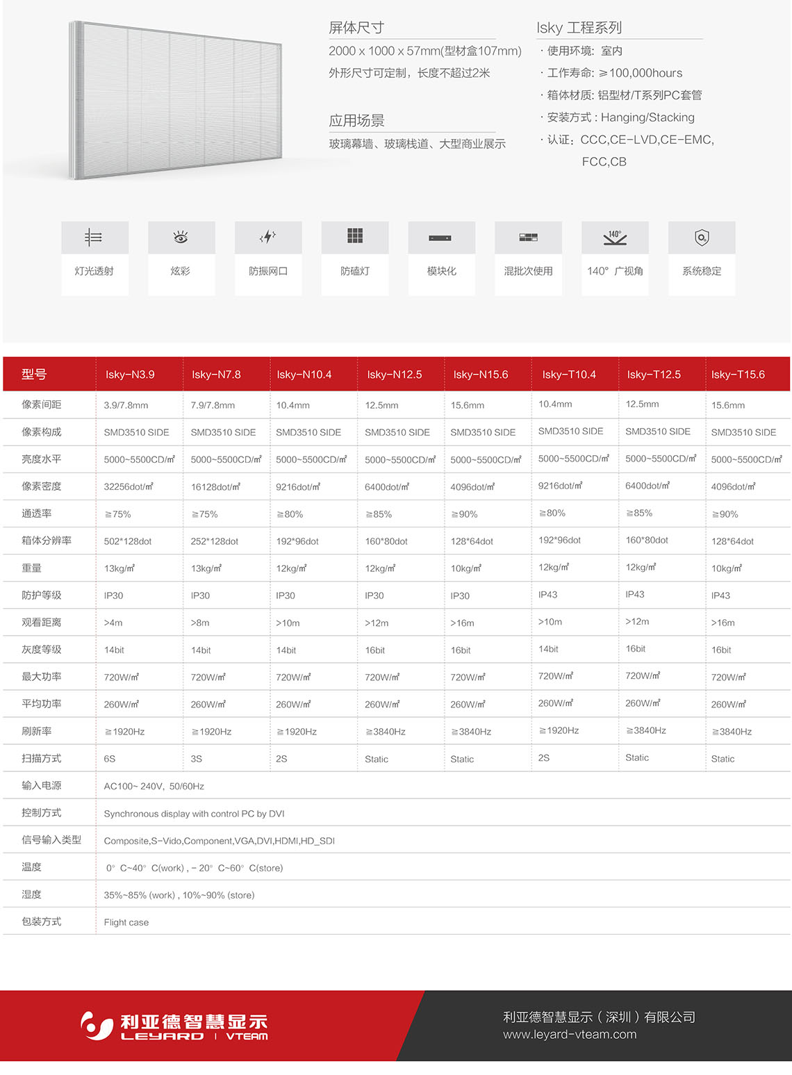 Isky工程系列包含:Isky-N系列(無套管)、Isky-T系列(帶套管)。 利亞德智慧透明屏是一類創(chuàng)新型的透明LED 顯示屏,不影響建筑空間及建筑采光,成功的實現(xiàn)了商業(yè)顯示,搭建智慧城市新零售、新體驗、新業(yè)態(tài),讓智慧商顯 融入現(xiàn)代城市。